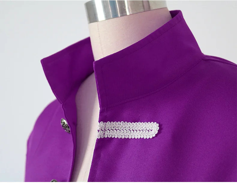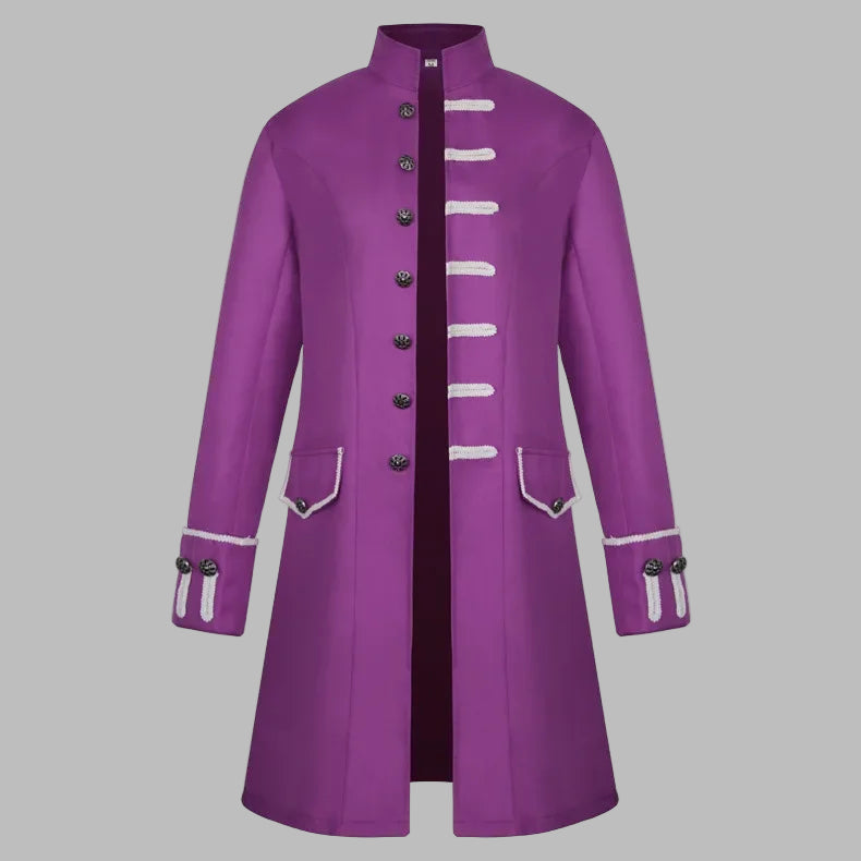 Lila Herren-Steampunk-Mantel mit weißen Zierkordeln
