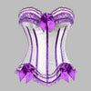 Lila Korsett mit Spitze, Schleifen und Rüschen im Rock-Stil