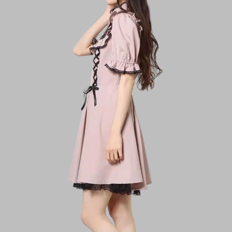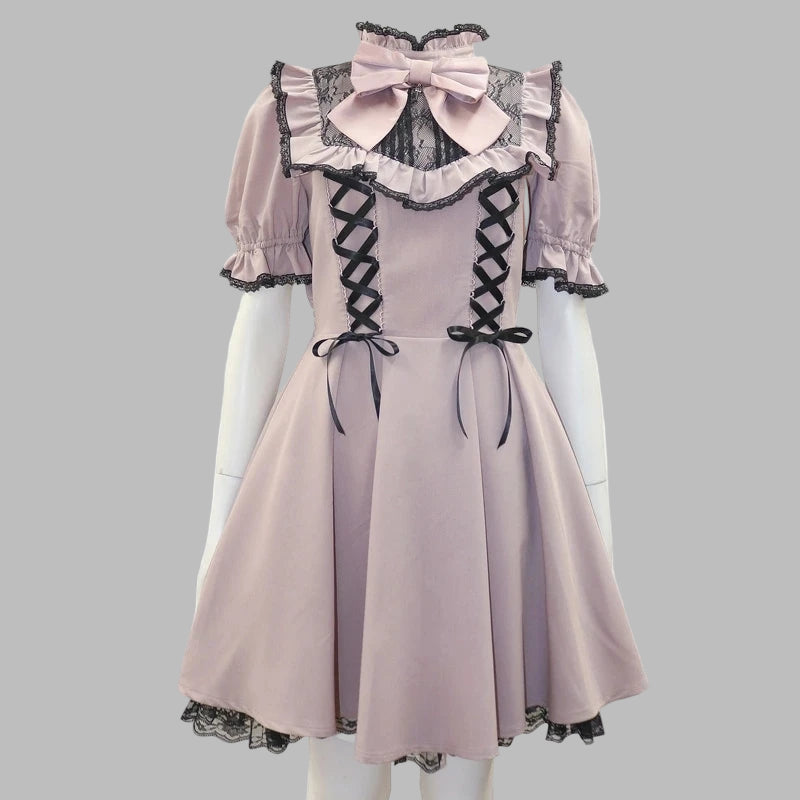 Lila Punk Rock Kleid mit Doppelschnürung und Schleifen
