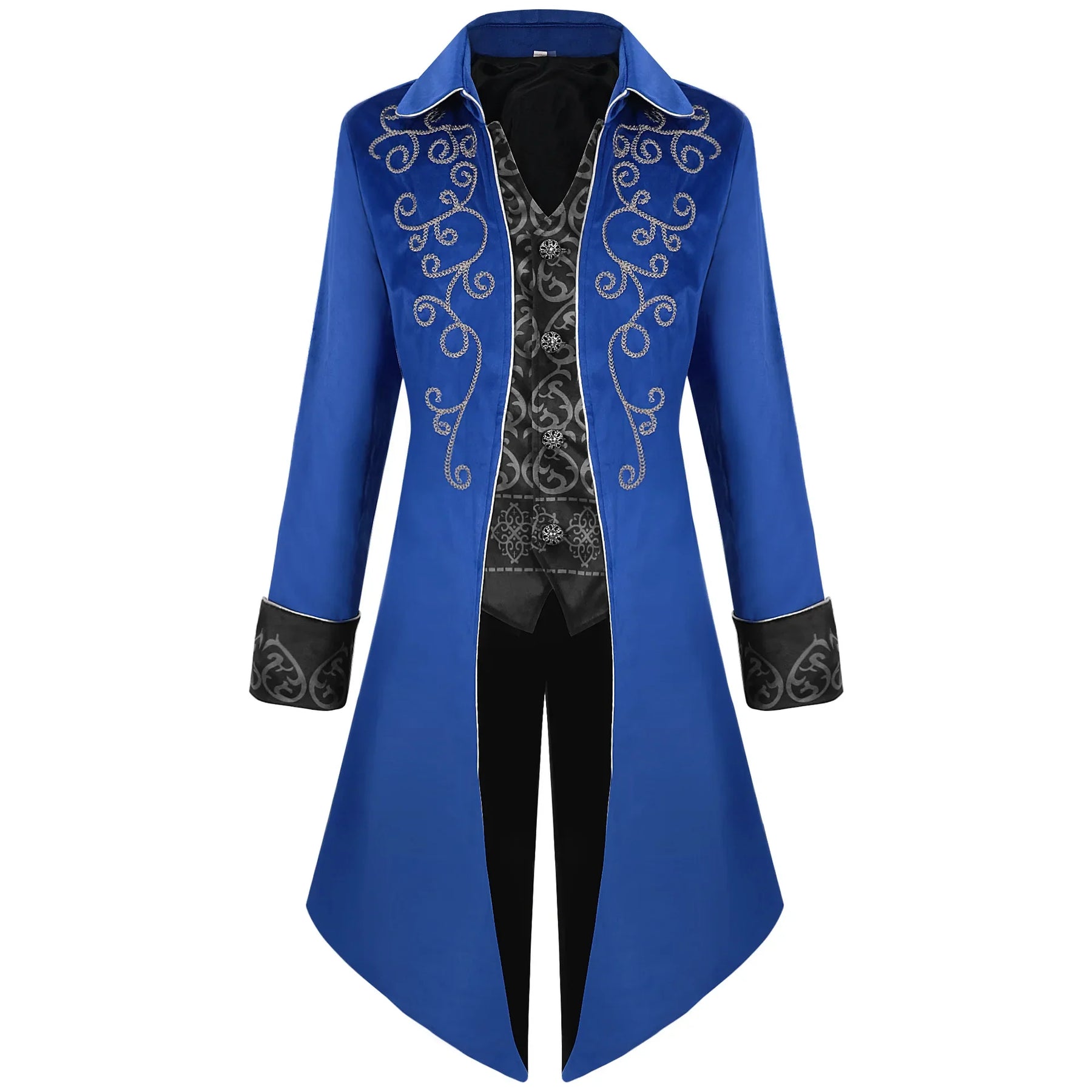 Mittelalterlicher Gothic-Herrenblazer mit silbernen Verzierungen blau
