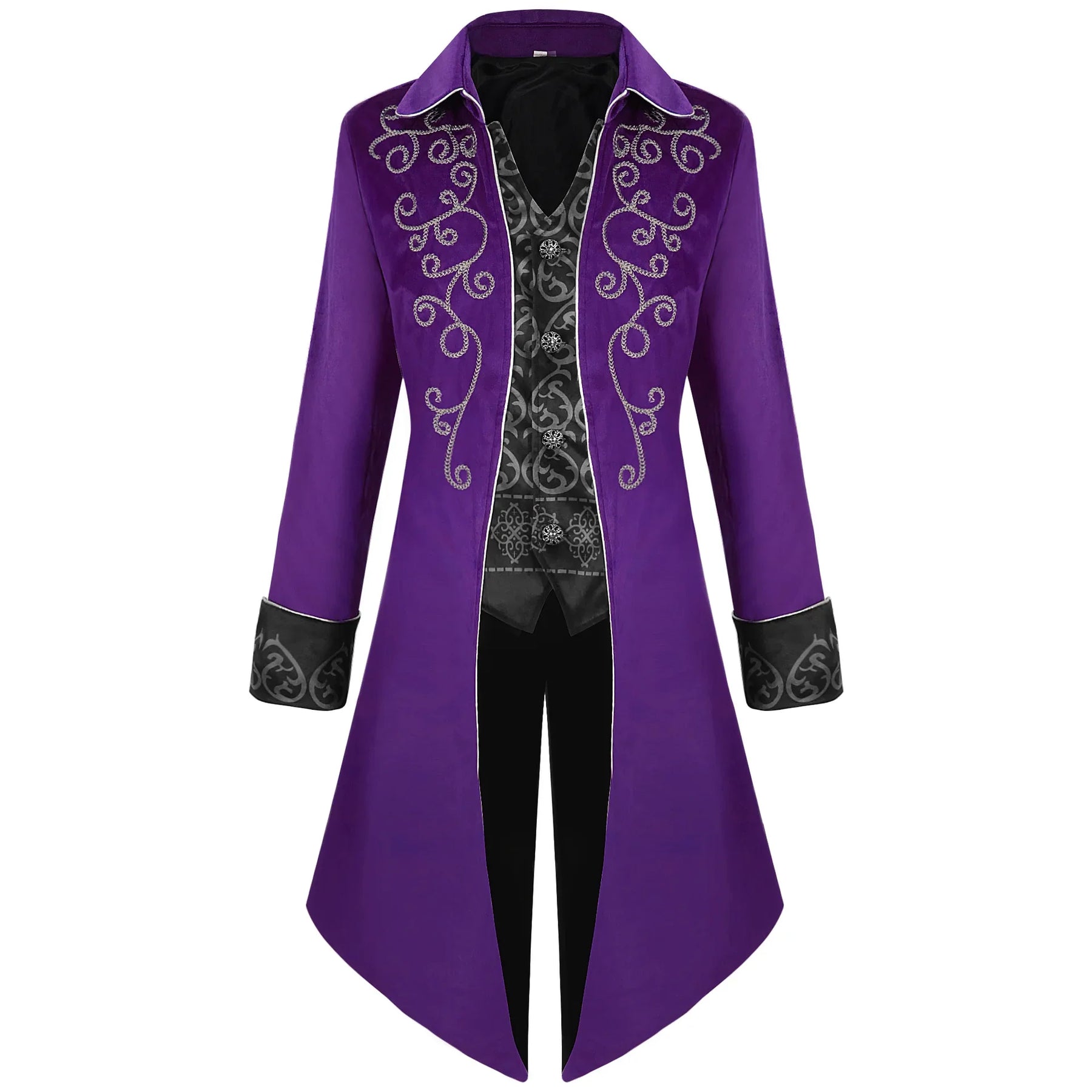Mittelalterlicher Gothic-Herrenblazer mit silbernen Verzierungen lila