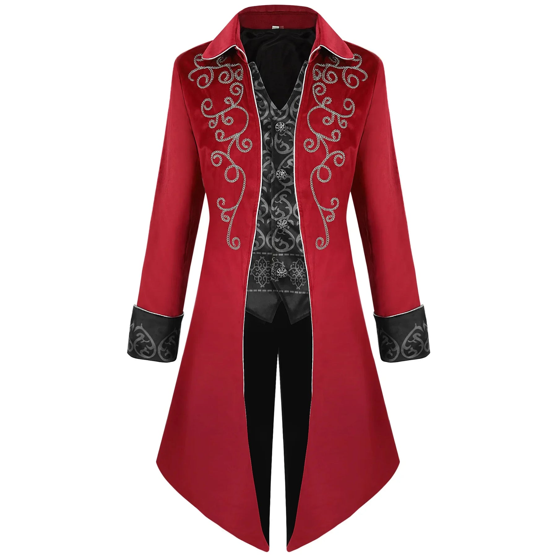 Mittelalterlicher Herren-Gothic-Blazer mit silbernen Verzierungen rot
