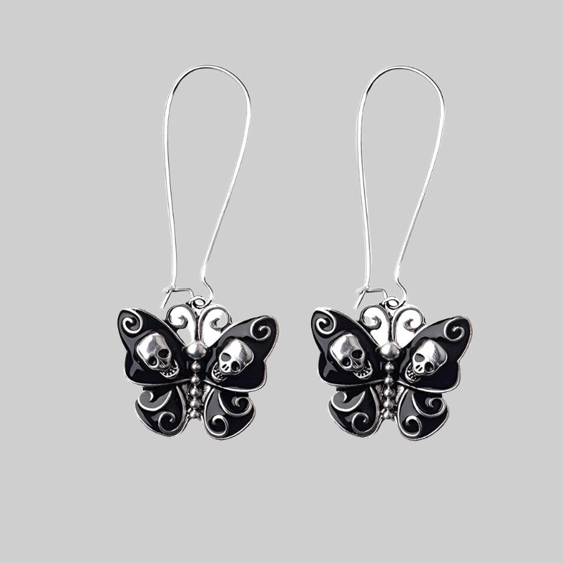 - Dekoration: Schädel auf den Flügeln eines schwarzen Schmetterlings graviert, Metallornament
