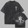 Oversize Grunge T-Shirt mit Kreuz und Schriftzug Believe Gothic