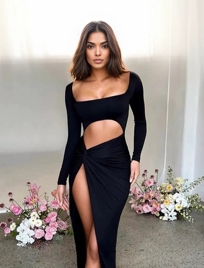 • Verführerische Casual-Details: Lange Ärmel und ein quadratischer Ausschnitt verleihen diesem Kleid eine Note von Verführung und Charme und schaffen eine harmonische Balance zwischen Verführung und Eleganz.