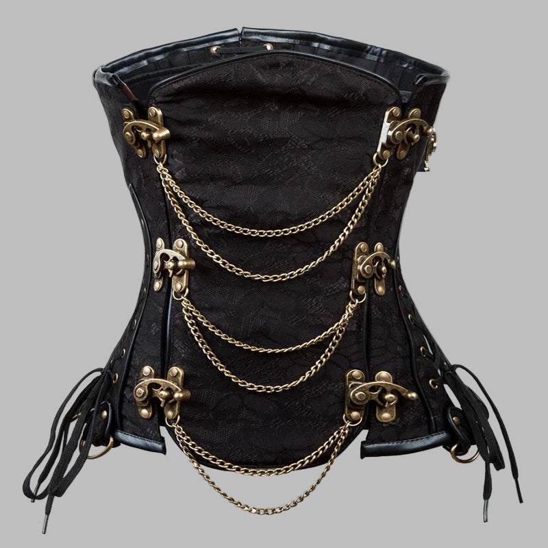 Schwarzes Punk-Gothic-Korsett mit goldenen Ketten und Steampunk-Schnallen