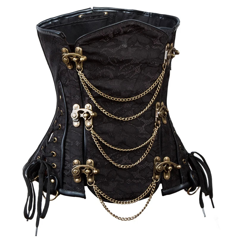 Punk Gothic Korsett Schwarz mit Ketten Goldene Schnallen Steampunk