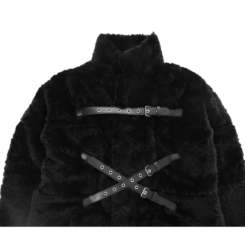 Punk-Metal-Mantel Schwarz mit Riemen Lang Fell