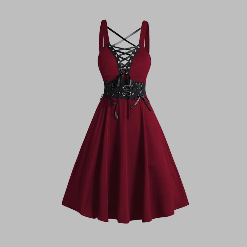 Bordeaux Punk Rock Kleid mit Korsett und Schnürung