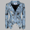 Punk Rock Metal Bikerjacke mit Zeitungsdruck Blau