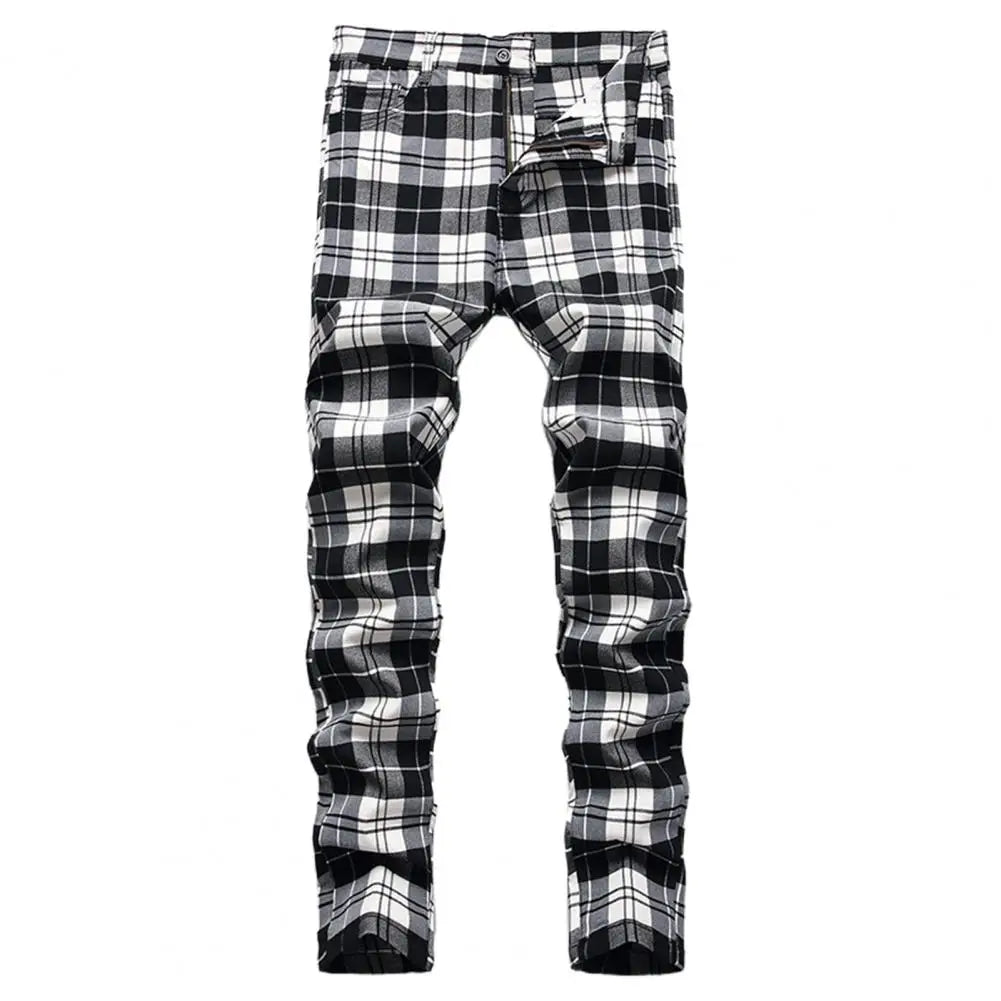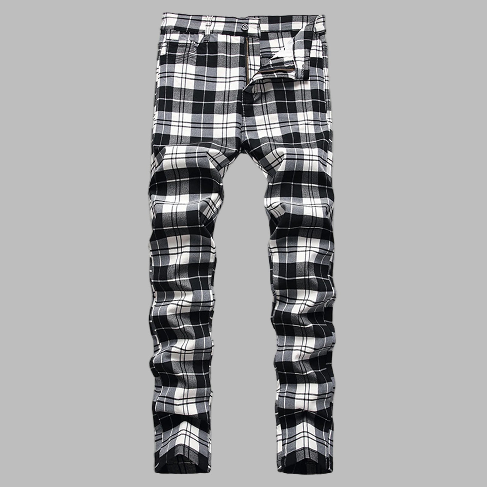 Schwarz-weiß karierte Punk Rock Slim Fit Hose