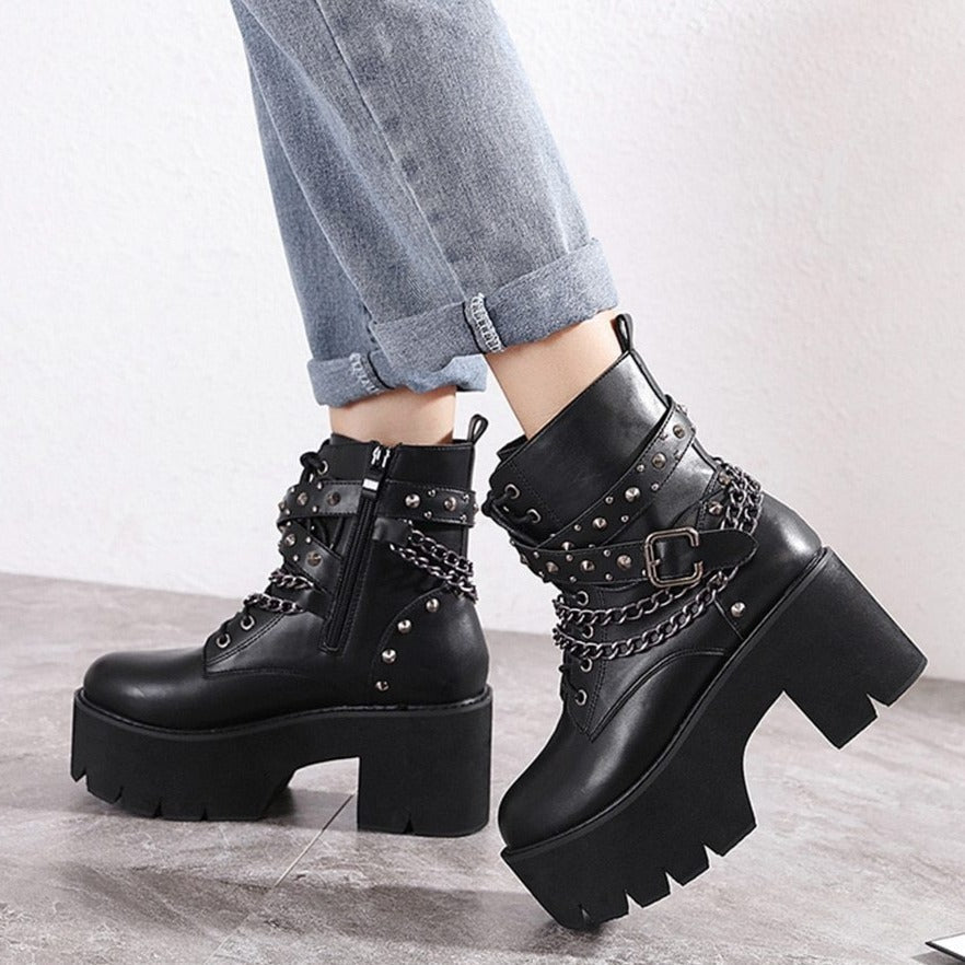 - Keilstiefel mit quadratischem Absatz: langlebig und robust