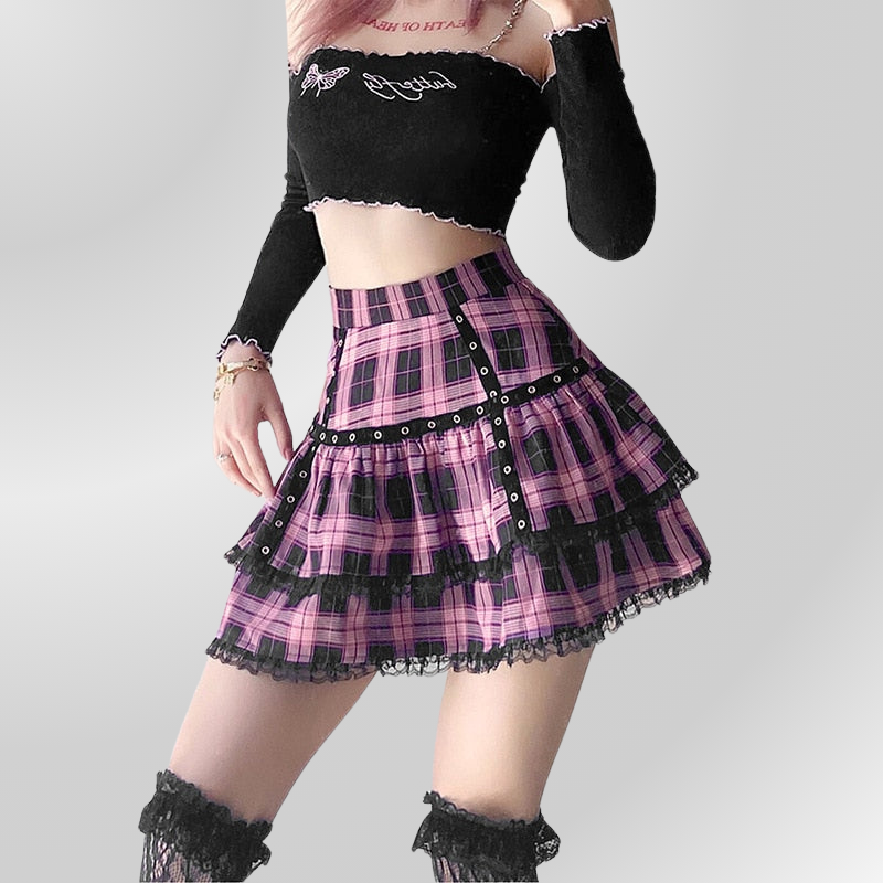 • Karo-Muster: Das Karo-Muster verleiht dem Rock einen Hauch von Retro-Raffinesse und schafft die perfekte Balance zwischen Gothic-Stil und Lolita-Eleganz.