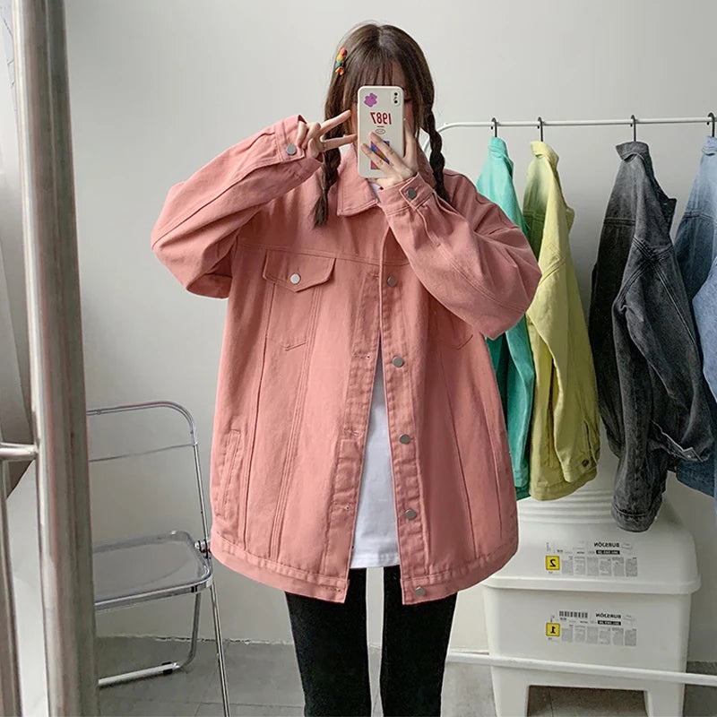 Rosa Oversize Vintage Punk Rock Jeansjacke