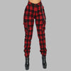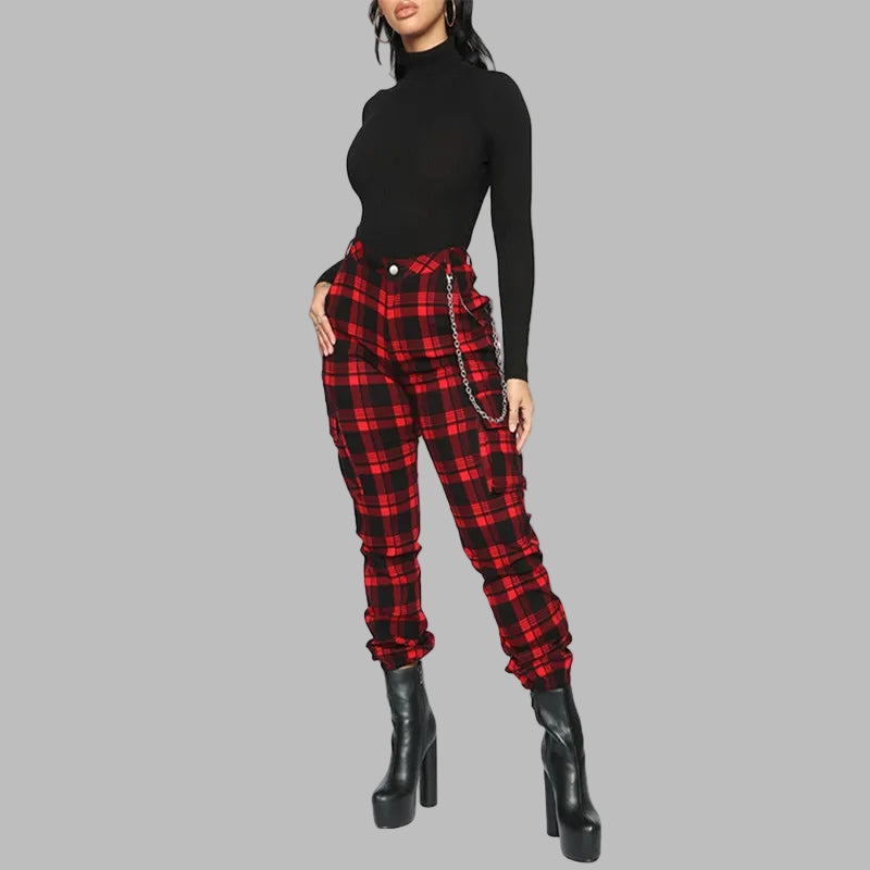 Rot-schwarz karierte Punk-Hose mit Kette, eng anliegend