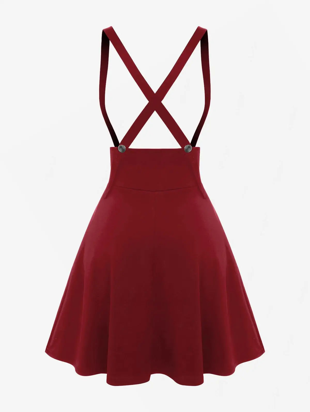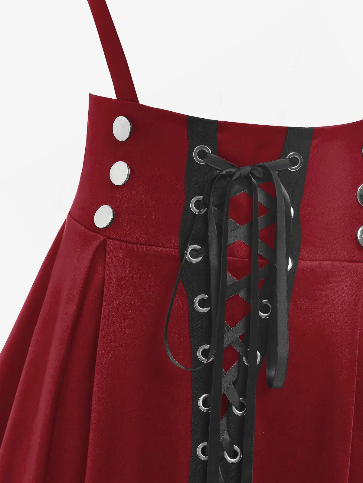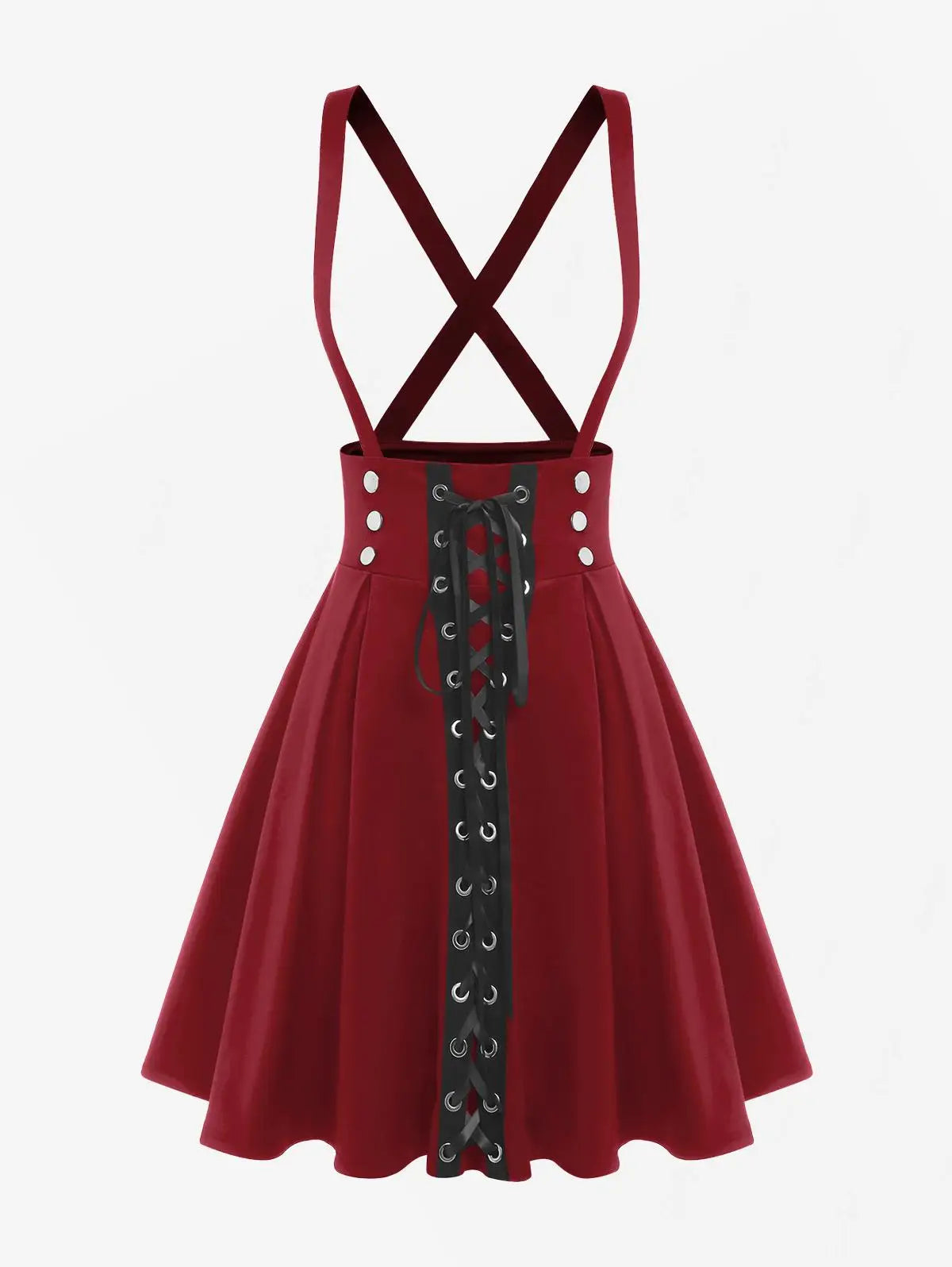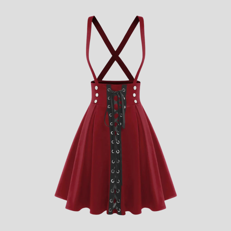 Roter Jirai Kei Rock mit Hosenträgern und Korsettschnürung Optionen anzeigen