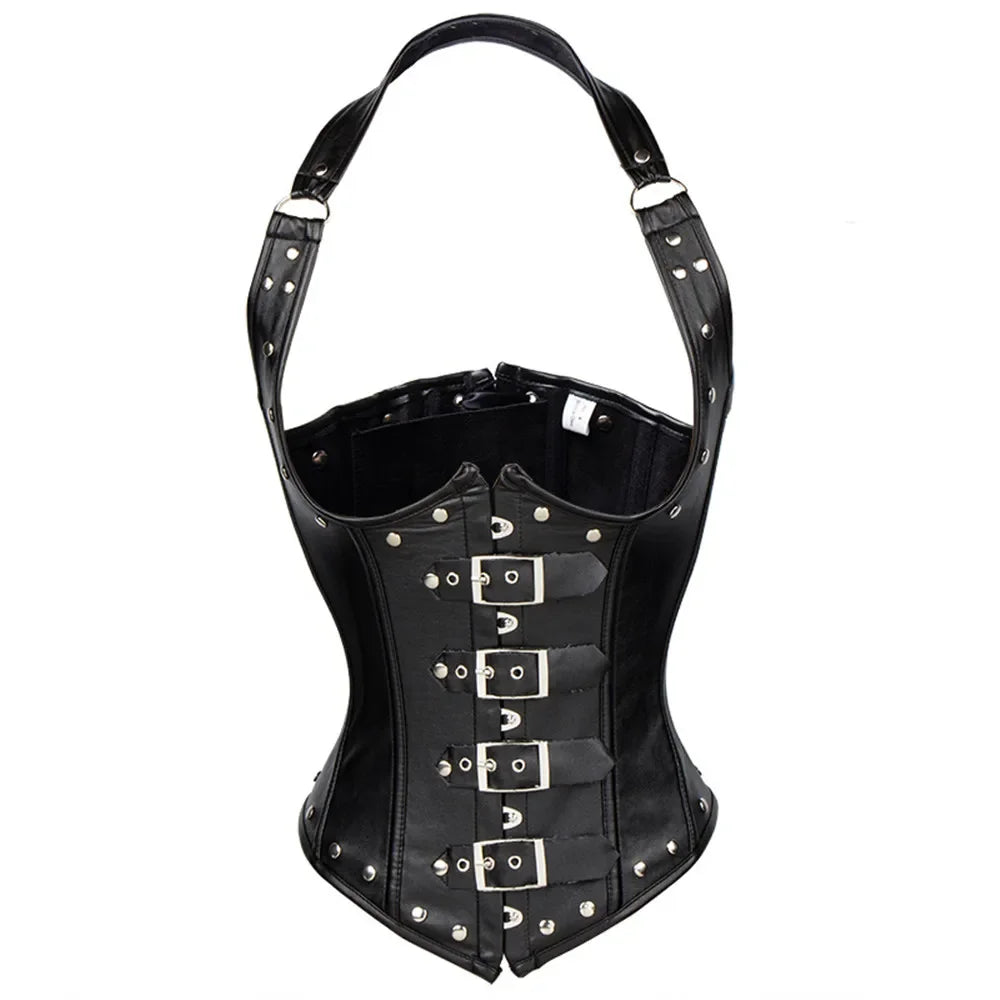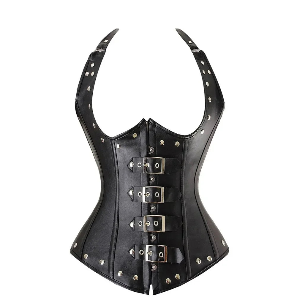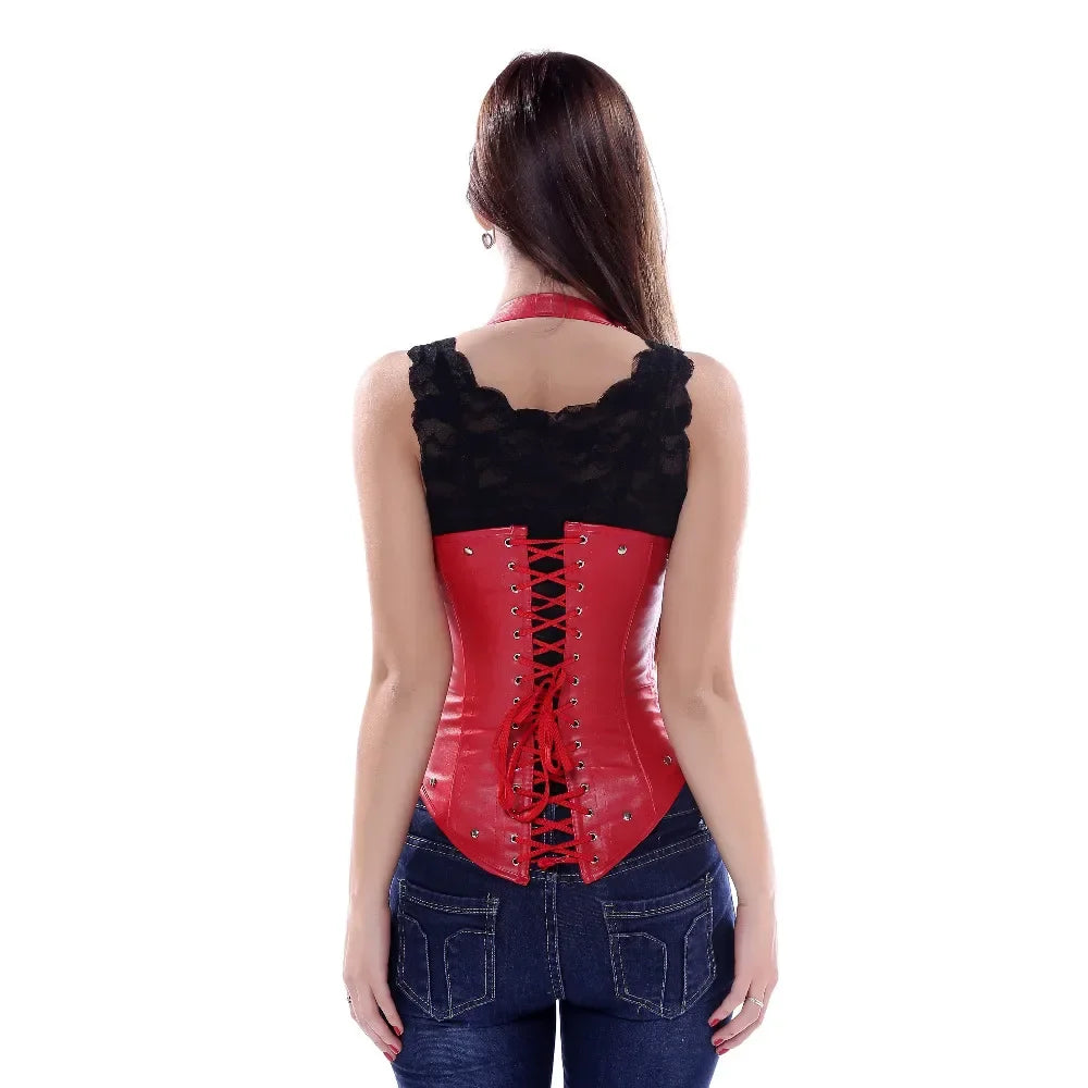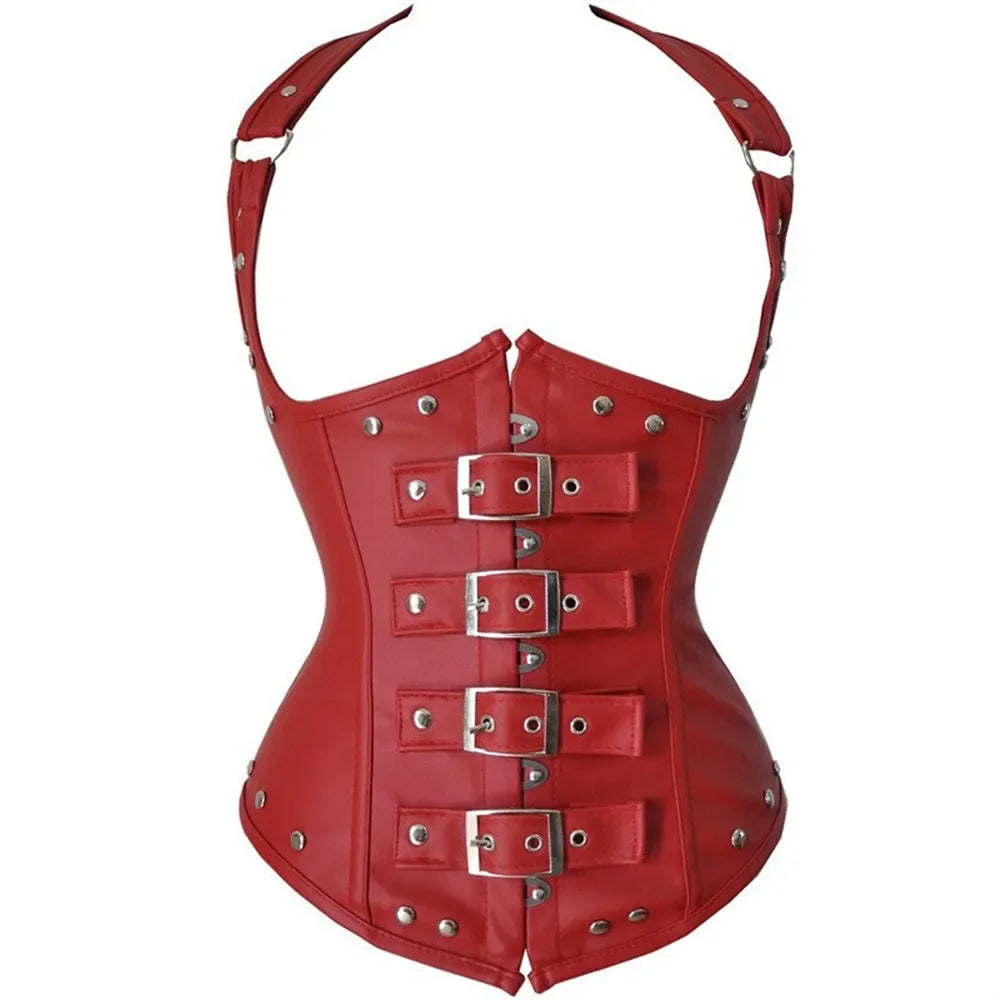 Roter Kunstlederkorsett mit Schnallen – Damen Punk Rock Stil