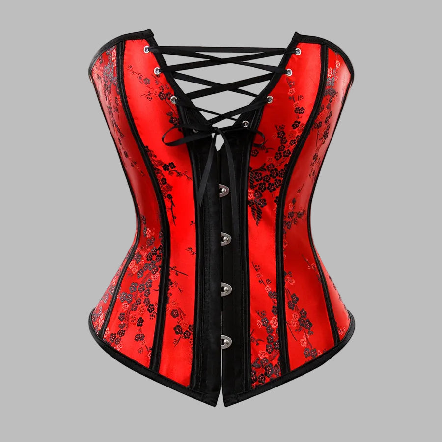 • Merkmale: Blumenmuster, Jacquard, Korsett über der Brust, Schnürung hinten