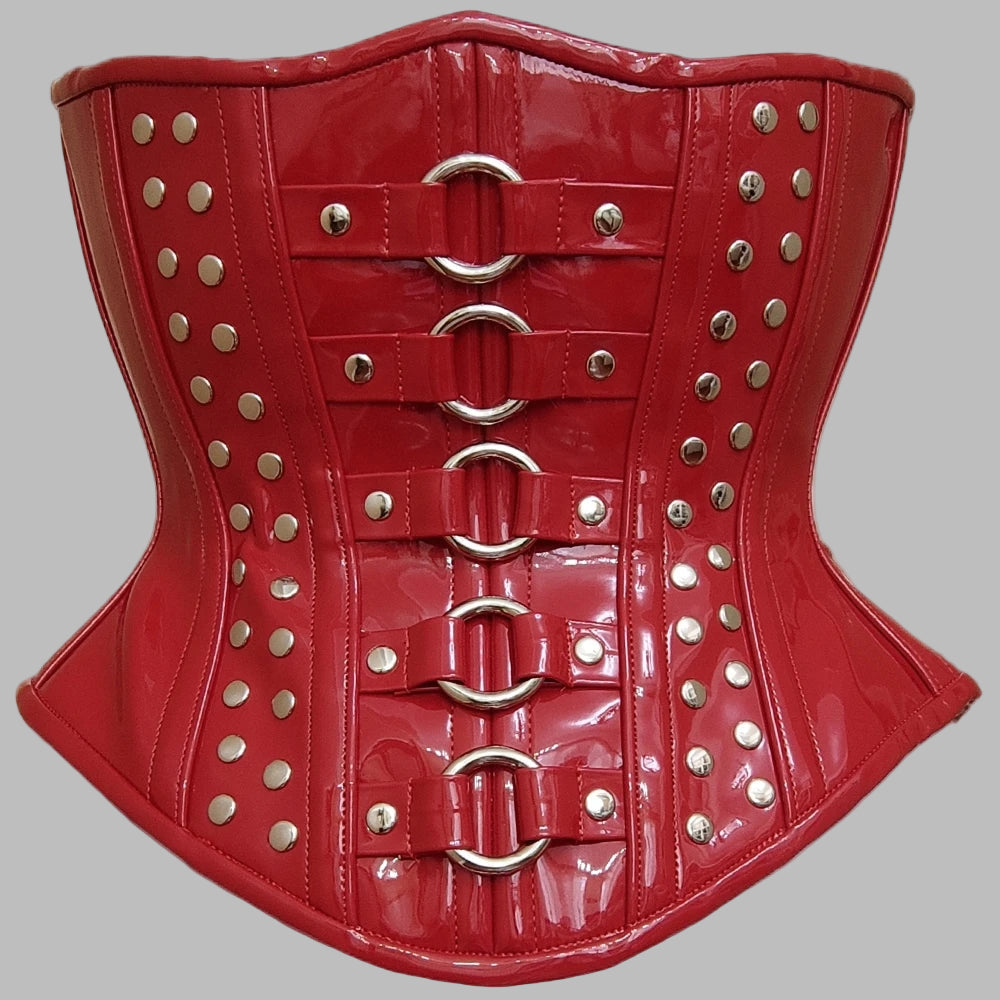 Roter Punk-Rock-Korsett mit Nieten und Metallringen