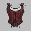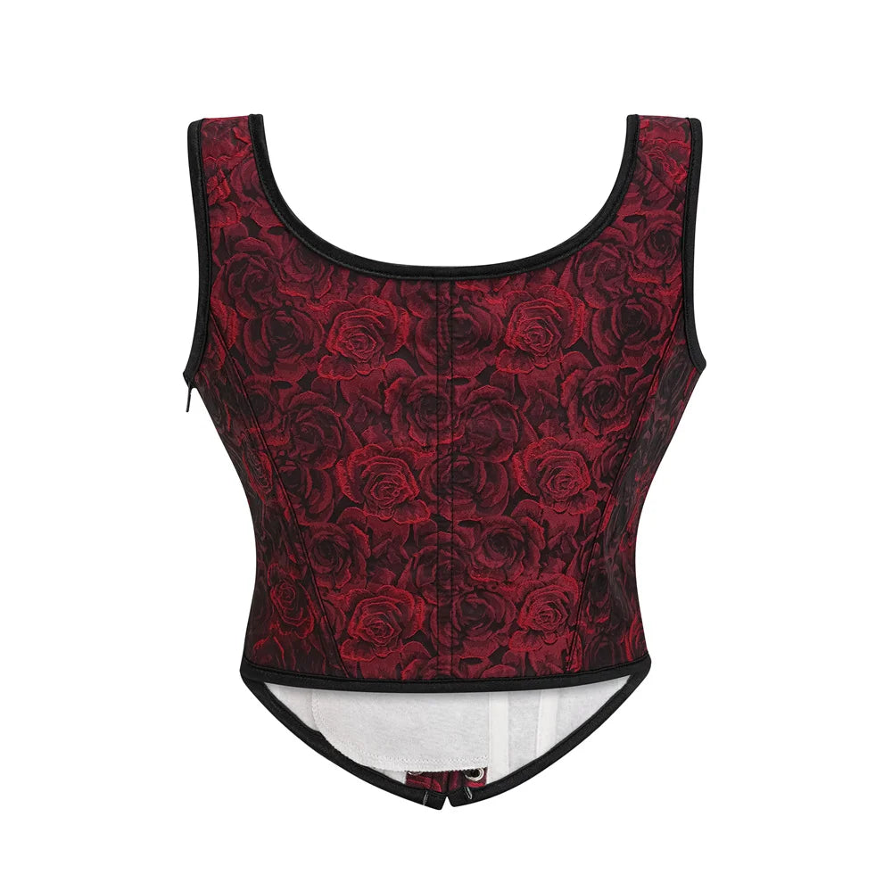 Roter schwarzer Gothic-Korsett mit Rosenmuster und Trägern