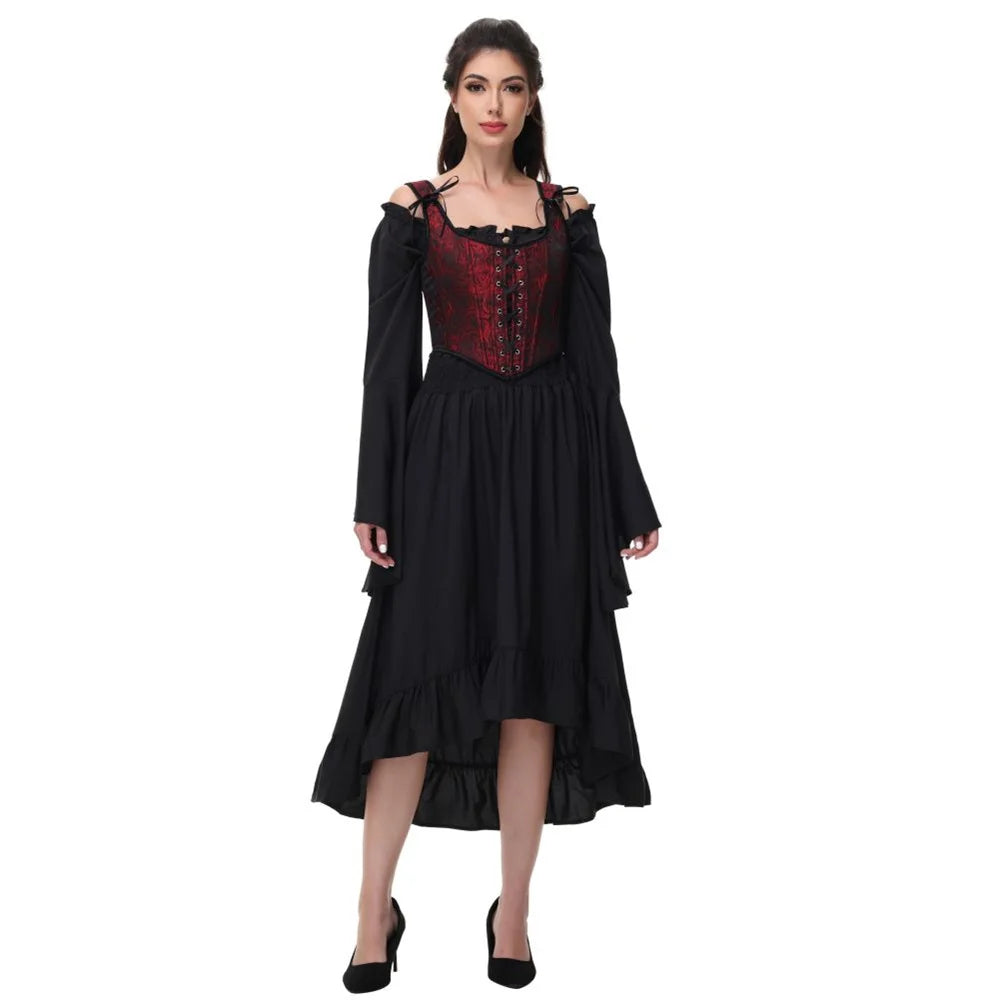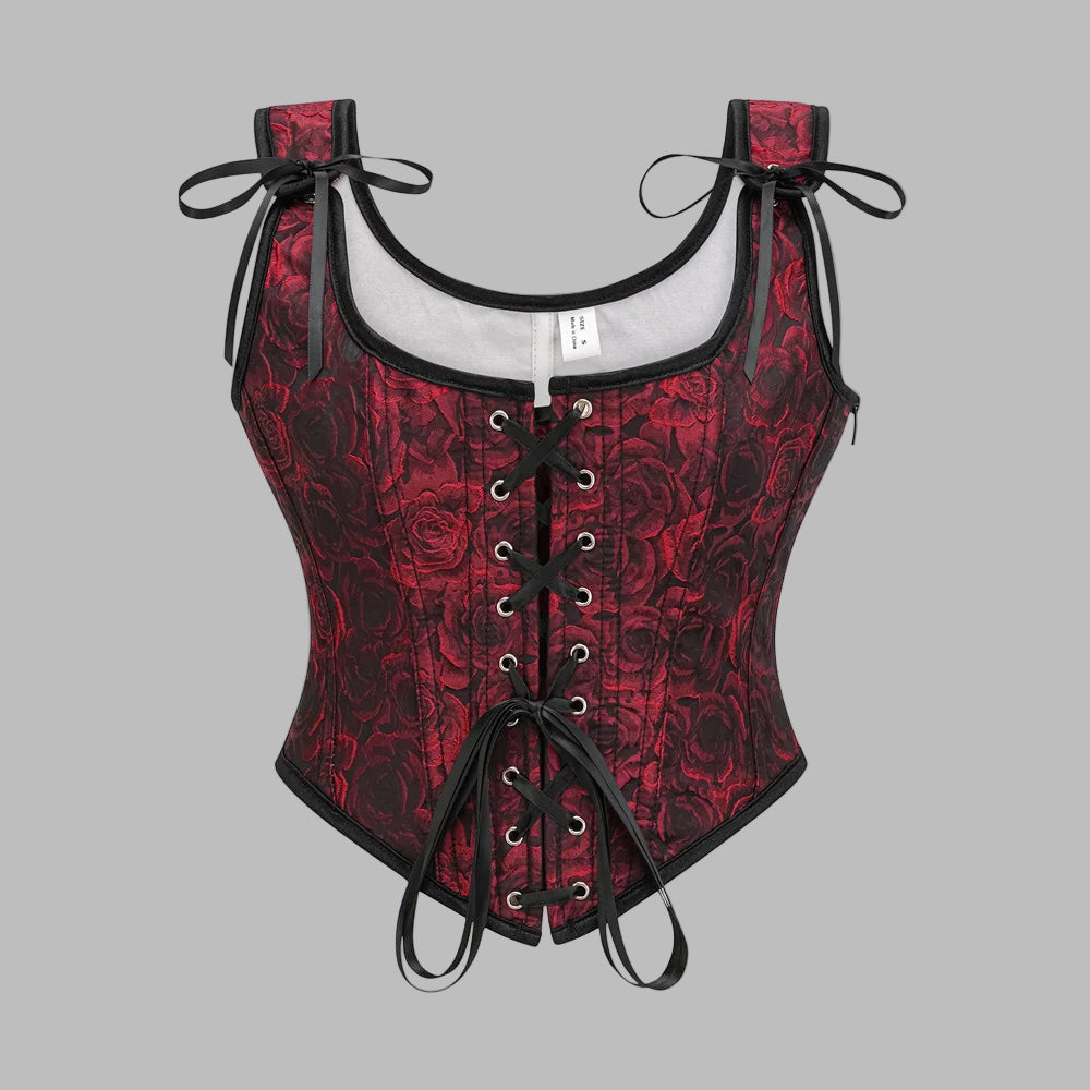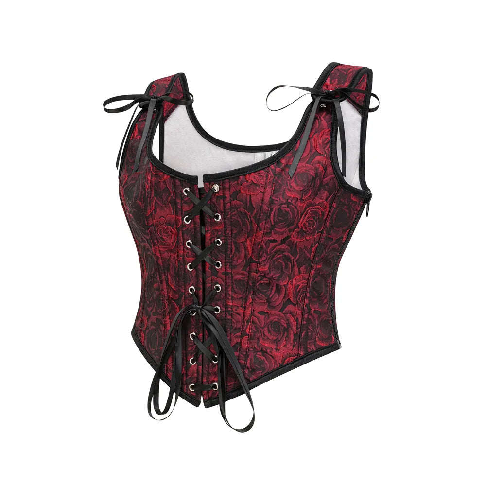 Rot-schwarzes gotisches Korsett mit Rosenmuster und Trägern