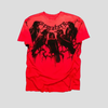 Rotes Summoner Metal T-Shirt mit Krähen und Nieten