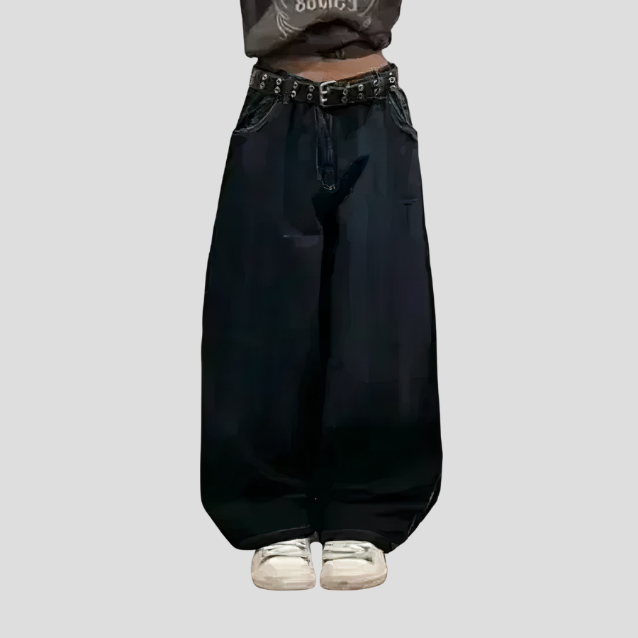 Schwarze Baggy-Jeans im Punk-Stil mit Drachen und Nieten