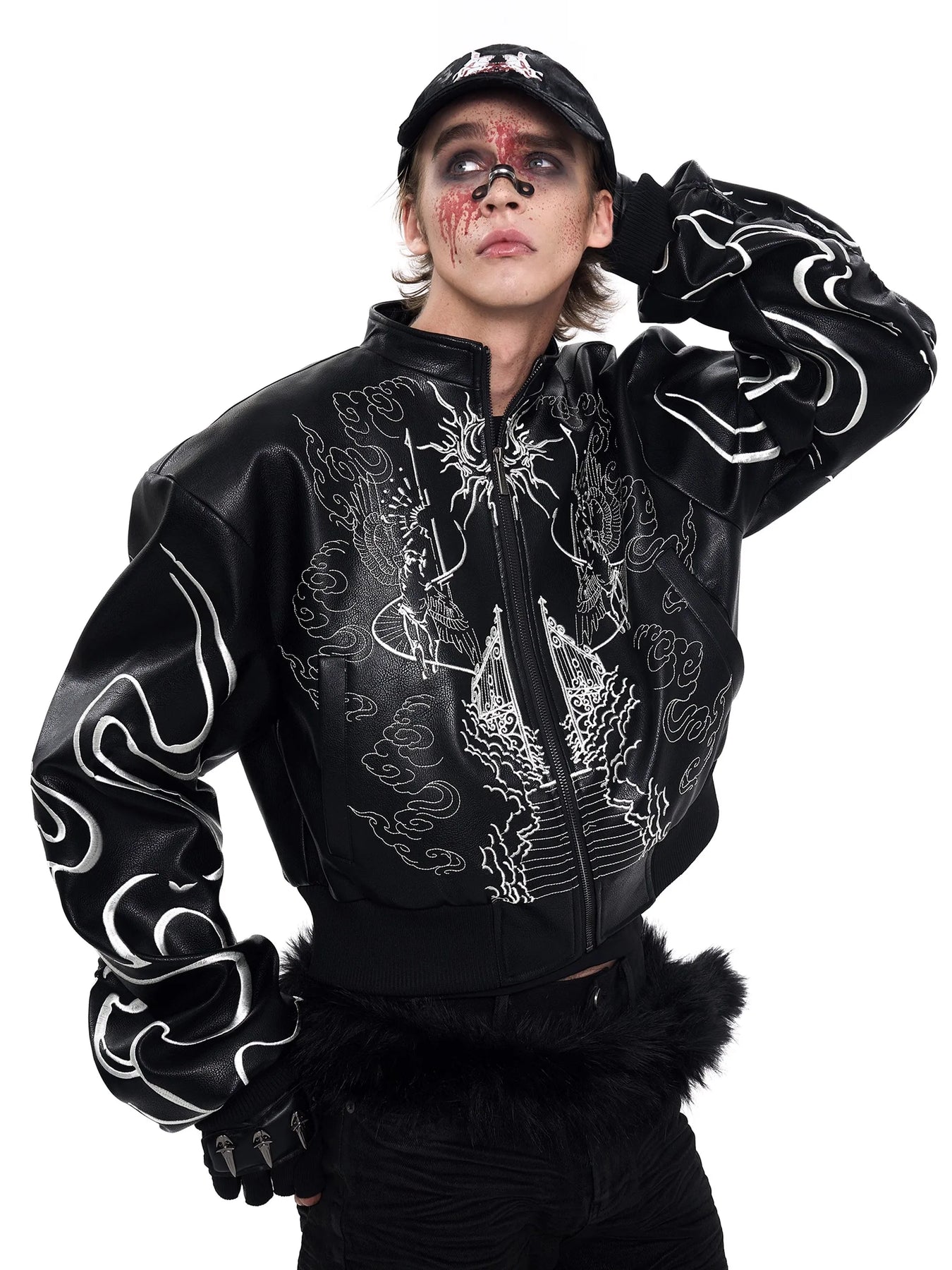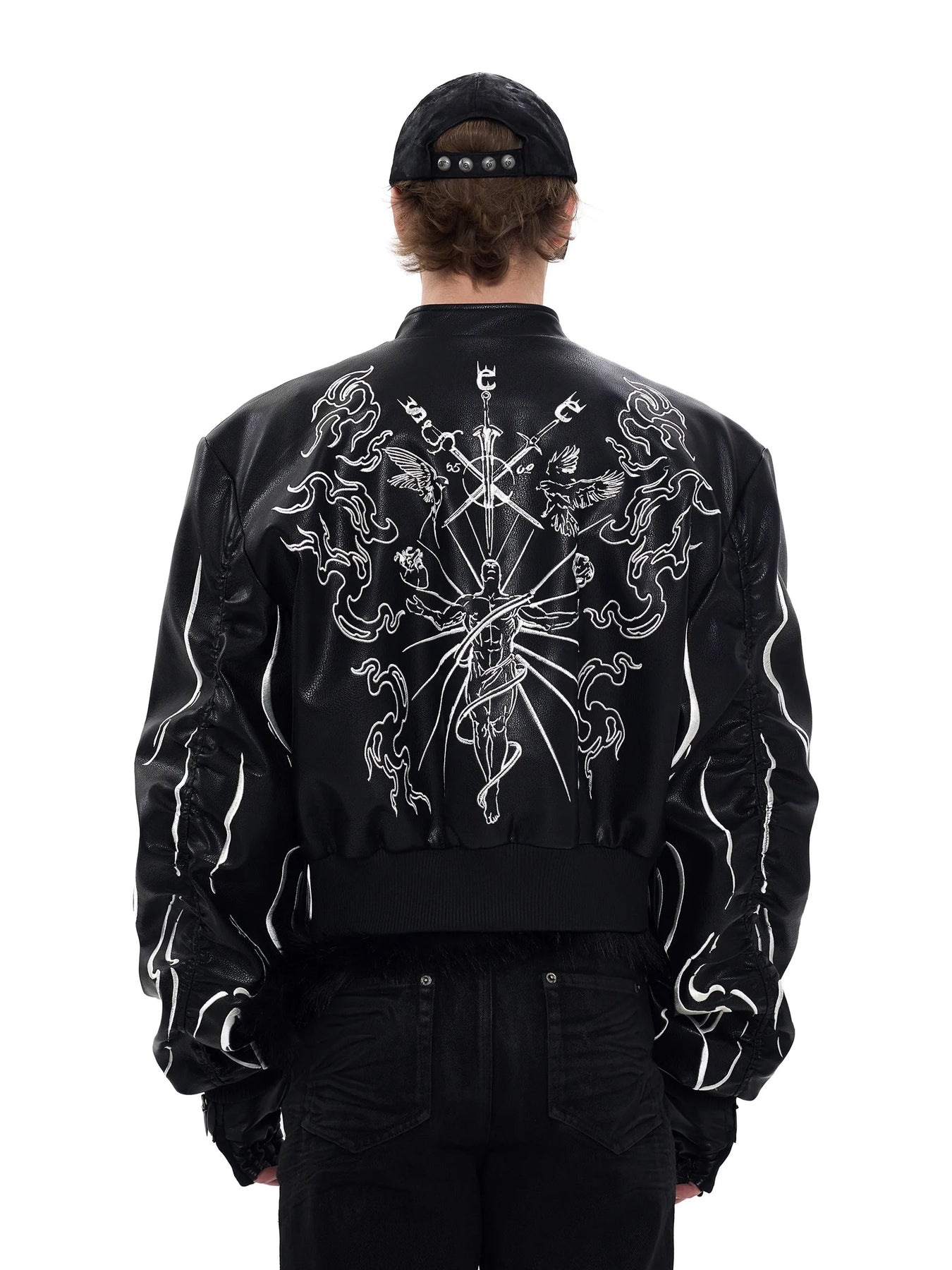 Schwarze Goth Metal Bomberjacke mit Engel- und Himmelstickerei Optionen anzeigen