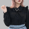 Schwarze Gothic-Bluse mit Spitzenkragen und Jirai Kei Herz Optionen anzeigen