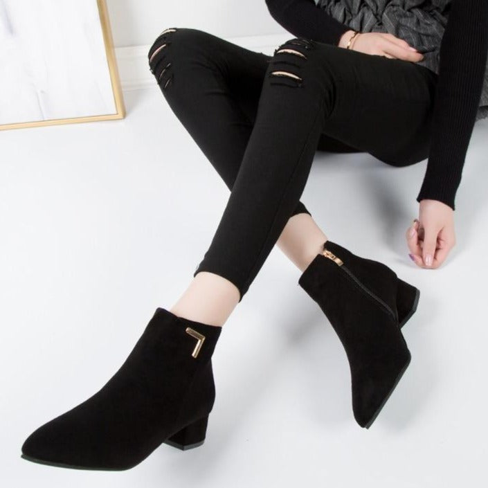 - Verziert mit einem Stück goldfarbenem Metall: betont den Schuh