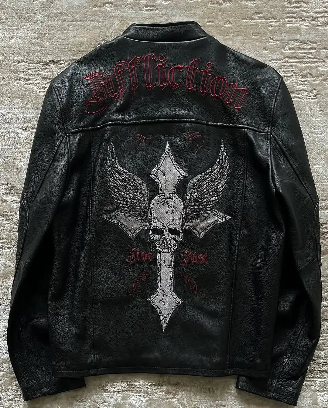 Schwarze gothic Lederjacke mit Kreuz Optionen anzeigen