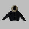 Schwarze Grunge-Bomberjacke mit Fellkapuze Optionen anzeigen