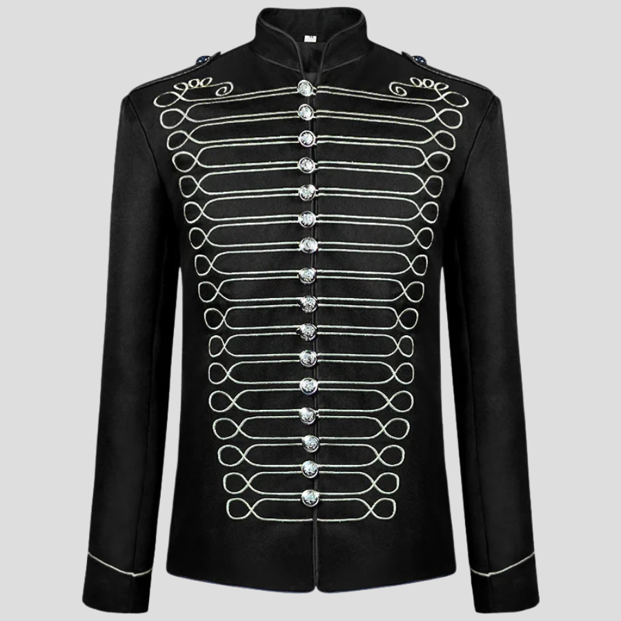 Schwarze Herren-Steampunk-Jacke mit weißen Zierschnüren