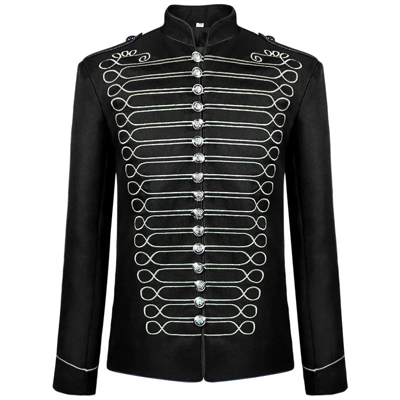 Schwarze Steampunk-Jacke mit Weißen Zierschnüren für Herren