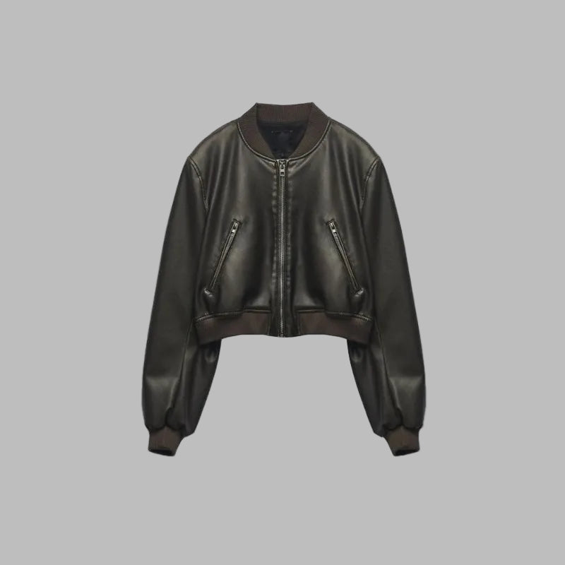 Schwarze kurze Damen-Lederjacke Rock Goth mit Reißverschlüssen Optionen anzeigen