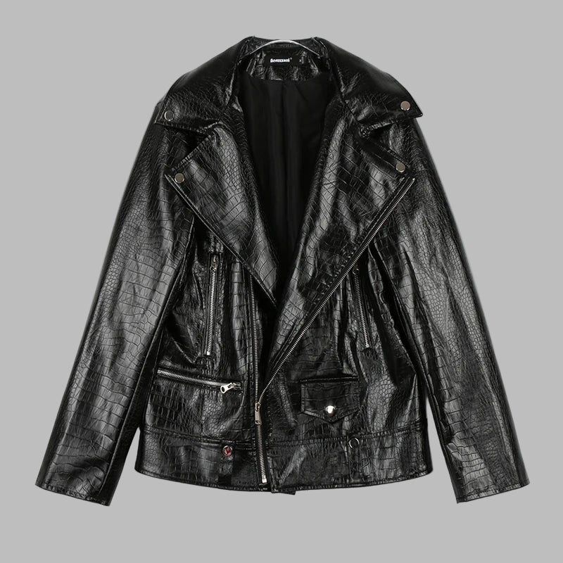 Schwarze Lederjacke im Goth-Metal-Punk-Stil
