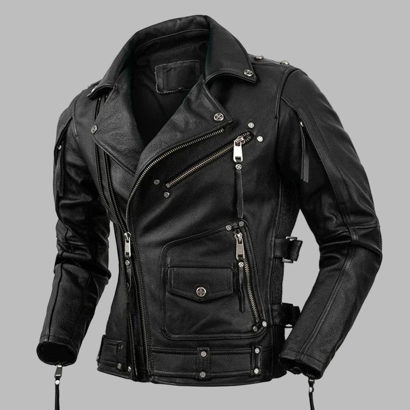 Schwarze Lederjacke im Punk-Rock-Stil Metal Bikerjacke