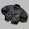 Schwarze Oversize-Lederjacke Punk Metal mit weißen Prints