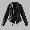 Schwarze Lederjacke mit Schnürung Punk Goth Rock XXL