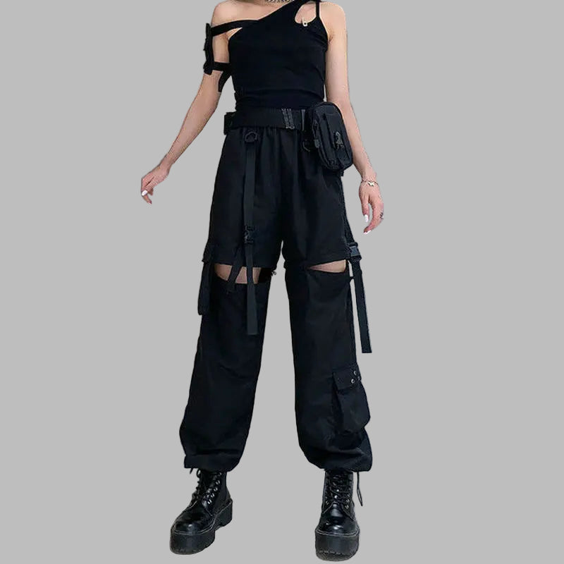 Schwarze Punk-Rock-Gothic-Hose mit Knieschlitzen