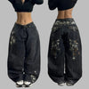 Schwarze Punk Rock Hose mit Pflanzenstickerei Grunge