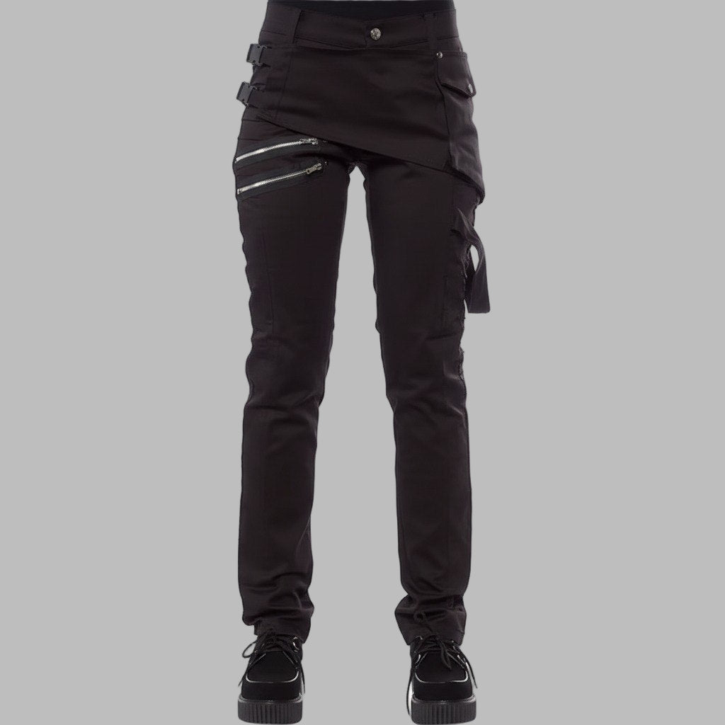 Schwarze Punk-Rock-Hose mit Reißverschlüssen Steampunk