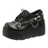 Schwarze Punk-Rock-Schuhe mit Ketten, Nieten und dicker Plateausohle