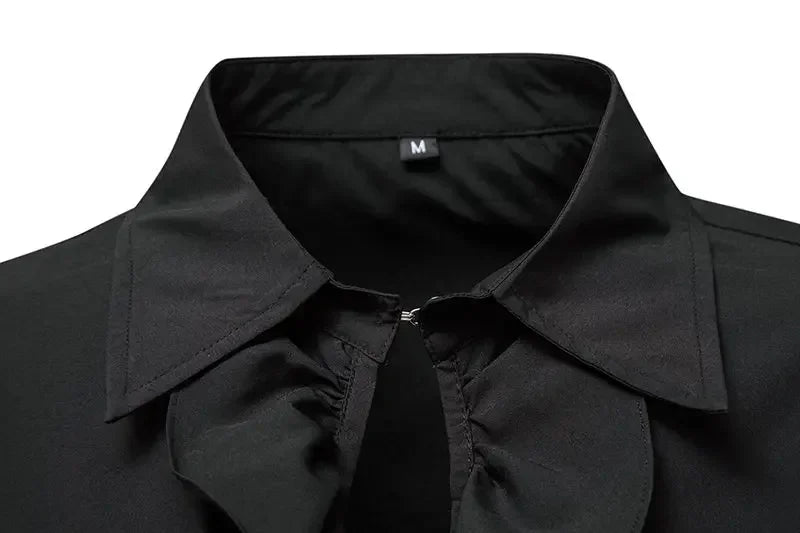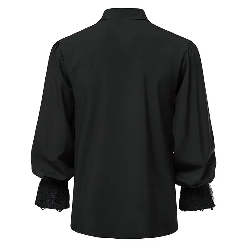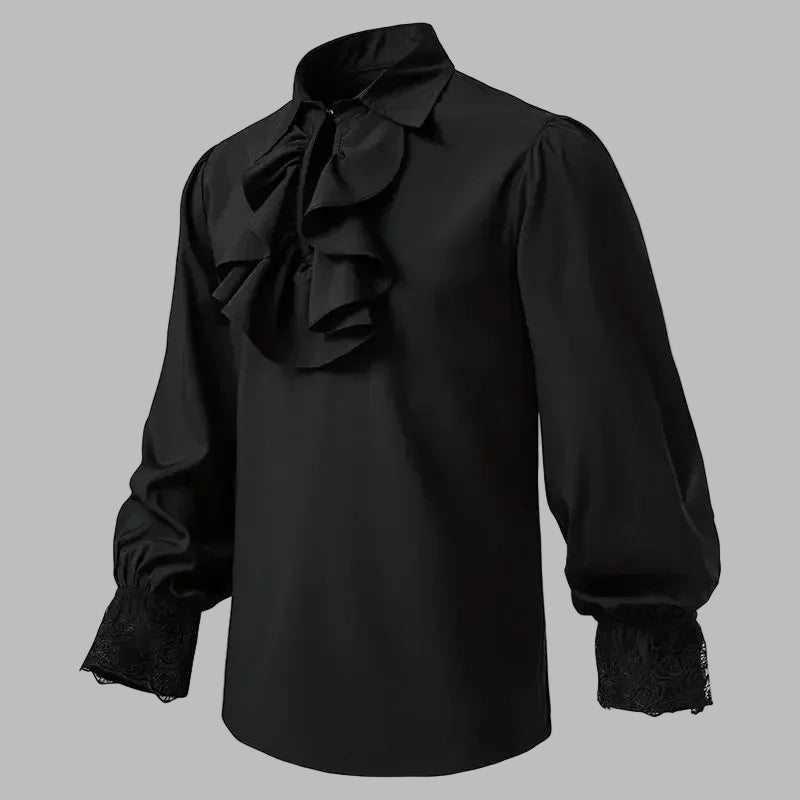 Schwarzes Rockhemd mit Spitzenmanschetten und Jabot