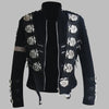 Schwarze Samt-Gothic-Jacke mit Metallverzierungen Steampunk Herren