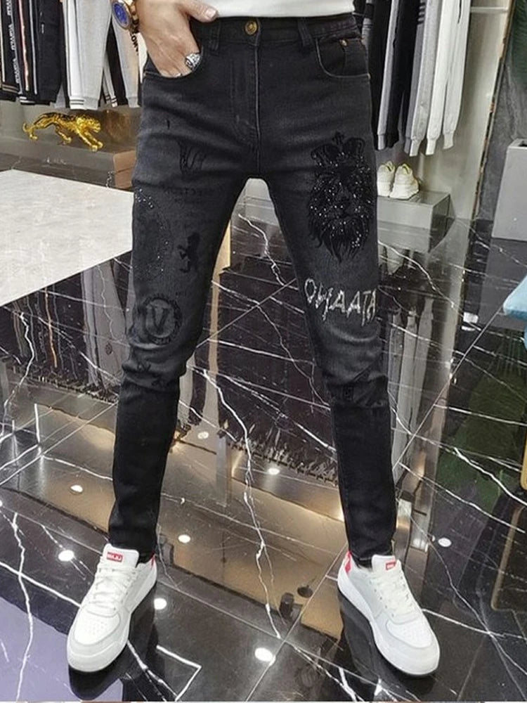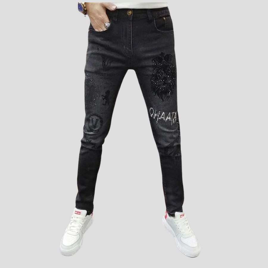 Schwarze Skinny-Jeans Metal mit Löchern und Vintage-Schriftzügen Optionen anzeigen