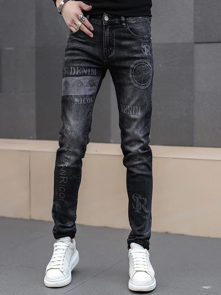 Schwarze Slim-Fit-Jeans Rock mit Schriftzügen und Grafischen Mustern