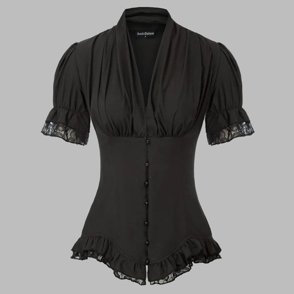 Schwarze Spitzenbluse im Metal-Stil mit kurzen Ärmeln