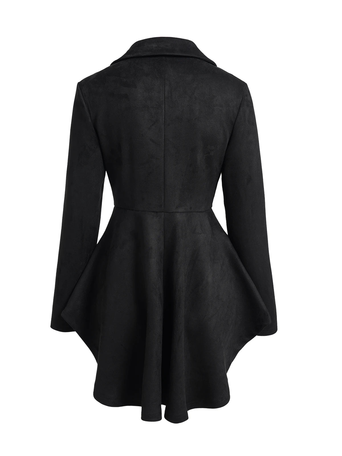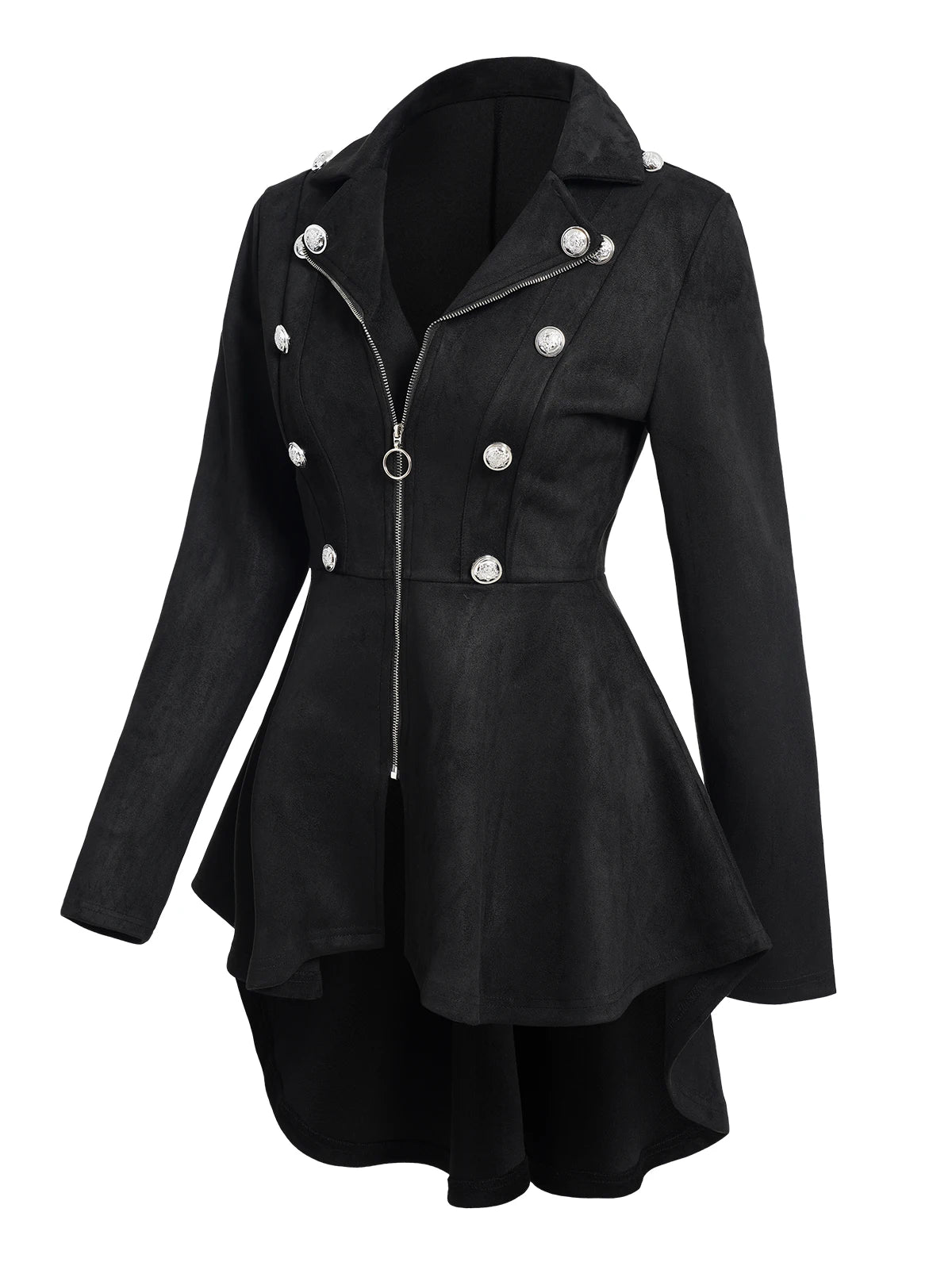 Schwarzer Damen-Gothic-Mantel, ausgestellt, mit Knöpfen und Reißverschluss