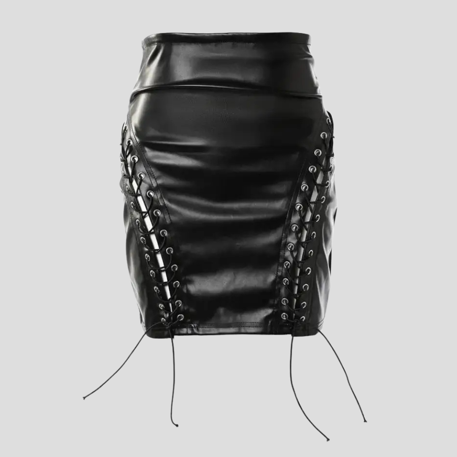 Schwarzer Gothic-Lederrock mit Schnürung, kurz und figurbetont